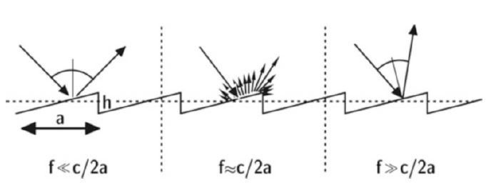 Figure. Energy reflected from a corrugated surface: scattered vs specular